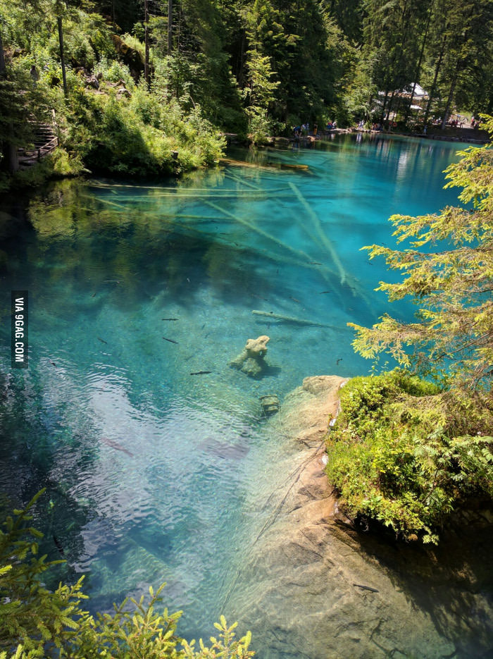 - Title: This is the Blausee (Bluelake), clearest lake in Switzerland.